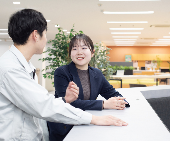 会社に保育園があり、福利厚生も充実していると知り、将来も安心して長く働けると感じ志望しました。女性社員が多く活躍し、結婚や出産後も仕事を続けやすい環境が整っている点も魅力です。実際に働いてみて、人間関係も良く、職場の雰囲気もあたたかいため、生活と仕事を無理なく両立できています。
