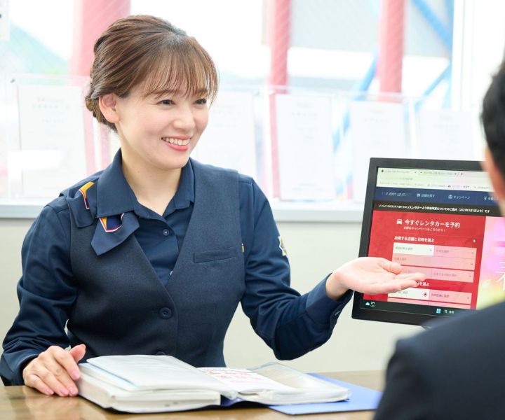 仕事内容はレンタカーの貸出受付だけでなく、車両チェックや清掃など多岐にわたります。業務を行うには、車種ごとに異なる操作方法や装備の位置の把握が欠かせません。覚えることは大変でしたが、この知識が日常で役立つ場面もあるので満足しています。また、普段乗れないような車に触れることもこの仕事の面白さです。