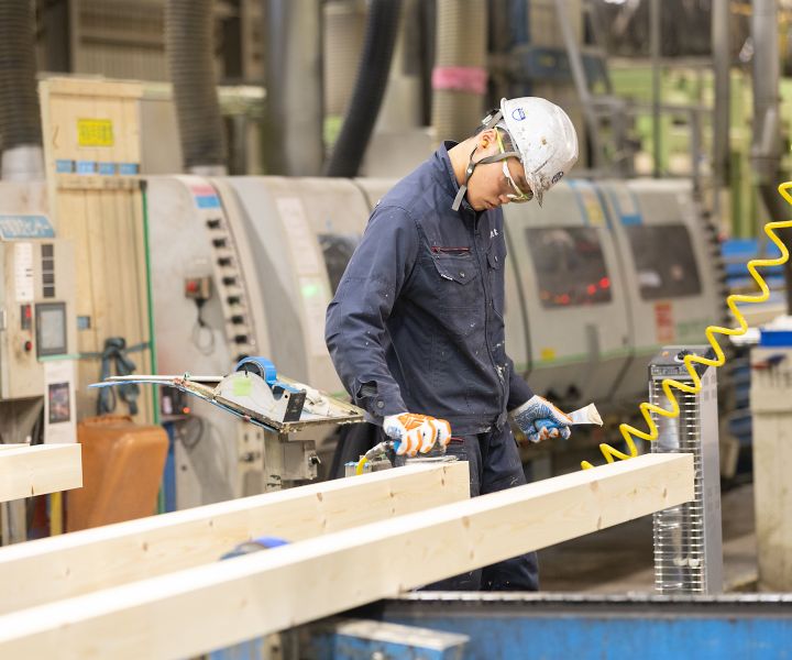 プレカット加工や立木伐採など、木を伐り暮らしに活かすところまで一貫して手がける木材メーカーです。輸入材で製造する集成材工場は生産量世界トップクラスの大型工場。「Boundaryless(境界のない組織)」を掲げており、部署や年代を越えて意見を交わし、若手社員が立ち上げたプロジェクトも多数あります。