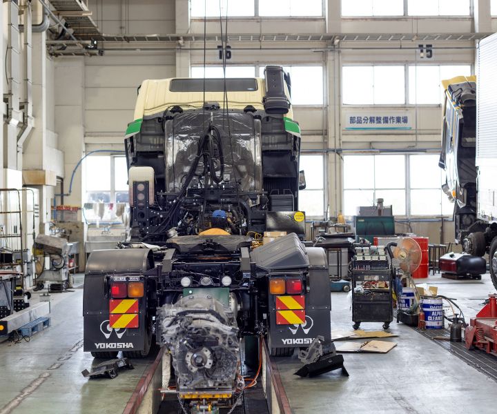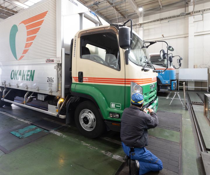 オカケンでおなじみの岡山県貨物運送グループの自動車整備会社です。大型・中型トラックから乗用車まで、車検・点検・整備に対応し、50年以上の実績を誇る技術力が強みです。年齢の近い先輩が丁寧に指導するため、未経験者でも安心。工場内には大型エアコンを備えるなど、働きやすい職場環境にも力を入れています。